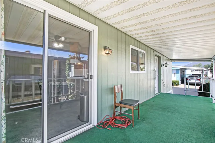 A comfortable den/family room sits just off the kitchen and opens onto the large covered porch via a sliding door, perfect for relaxing and enjoying views of the San Gabriel Mountains. Steps lead down to the backyard—ideal for outdoor seating, BBQs, gardening, or pets (if allowed by park rules).