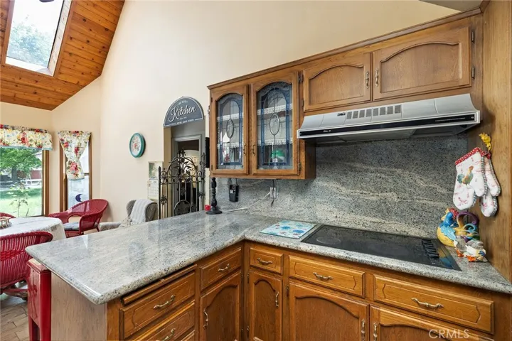 The kitchen includes granite countertops, oak cabinetry with stained glass accents, and a breakfast nook overlooking the backyard.