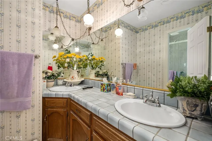 Outside, the grounds are designed for both relaxation and function, with a saltwater pool featuring a granite pebble finish and waterfall, gazebo, and built-in BBQ create a comfortable space for relaxing or entertaining. Plush lawns and established shade trees, along with mature orchard trees including lemon, tangerine, grapefruit, pear, plum, and loquat, add to the setting.