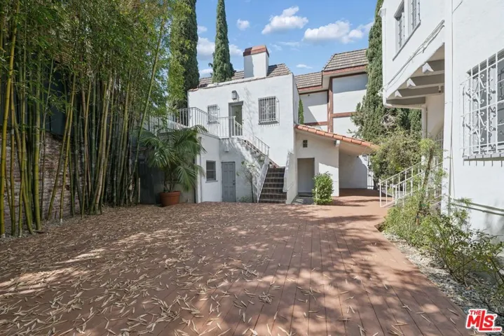 Unique mansion style asset zoned for commercial office use, offering live/work potential (buyer to verify). Ability to create a flagship/headquarters or a residential style compound in the heart of Los Angeles. The gated property offers 3 stand alone structures on-site: A main estate set up for multi-function office use, including a front reception area, with multiple private offices, meeting rooms, a large kitchen, 3 restrooms, and ample storage spaces, plus a 2nd private staircase for entry/exit points in the rear offers access to the expansive garden deck – A detached 2 story guesthouse / creative studio equipped with first floor offices, a full kitchen, and 2nd level guest space with remodeled marble bathroom and shower which can be used for office space or an apartment /guest quarters for traveling visitors – and a bungalow perfect for an extended meeting area, podcast studio, game room, or additional workspace. Mature Italian cypress trees, vibrant florals and striking bamboo give the property a distinct sense of charm and identity. The landscaped grounds allow for a seamless indoor/outdoor flow. This is an opportunity to acquire a completely private and gated compound in prestigious Hancock Park ideal for design-driven brands, creative companies, production studios, and professional firms including law firms, fashion houses, embassies, media companies, schools, and elevated wellness concepts seeking a distinctive flagship environment. A rare find with valuable potential.