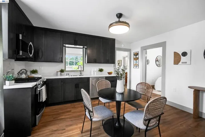 Fully renovated and full of charm, this beautifully updated Victorian duplex is ideally located near Downtown Hayward. Perfect for an owner-occupant, investor, or multigenerational living, the flexible layout offers the opportunity to live in one unit and rent the other, or enjoy separate living spaces under one roof. Upstairs Unit: This light-filled 3-bedroom, 1-bath residence features an updated kitchen with pantry, comfortable living room, utility room, and central heating and air for year-round comfort. Downstairs Unit: Also fully updated, this spacious 3-bedroom, 2-bath unit includes a stylish kitchen, inviting living room, utility room, charming front porch, and mini-split heating and air. Additional highlights include a detached 2-car garage, extra-long driveway, and a park-like shared backyard with mature trees for privacy, grass, covered patio, and concrete area for entertaining or relaxing. There may also be room for an ADU, offering added future income potential. Enjoy easy access to Downtown Hayward, dining, shopping, entertainment, and transit.