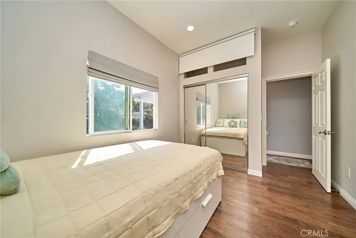 This home showcases a bright open floor plan with effortless flow between the living, dining, and kitchen and to the bedrooms. Elegant features include hardwood flooring, recessed lighting throughout, and a stylish chef’s kitchen complete with deep drawers, self-closing cabinetry, a farmhouse sink, and a generous island with a built-in range and suspended hood.