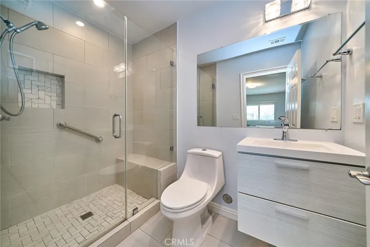 A split-level design leads down to two bedrooms with backyard access, while windows frame serene views of the lush, beautifully landscaped yard. The backyard is a private retreat, with charming details, manicured hardscape, and an atmosphere of calm and relaxation.