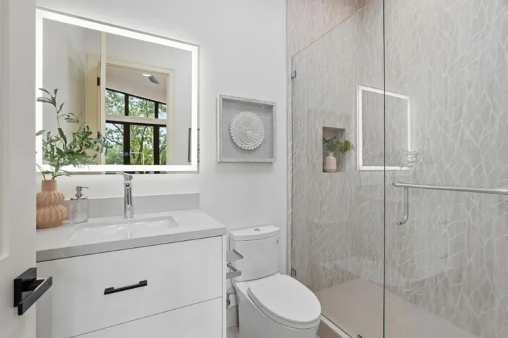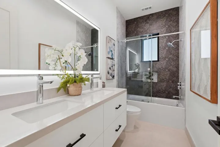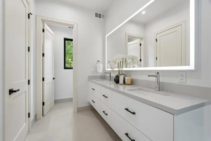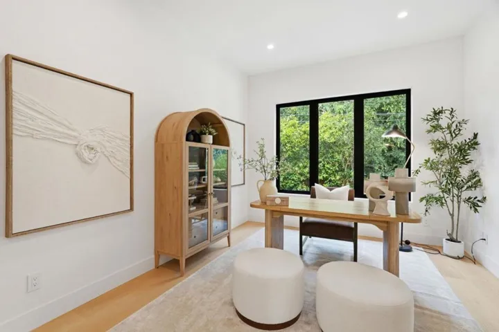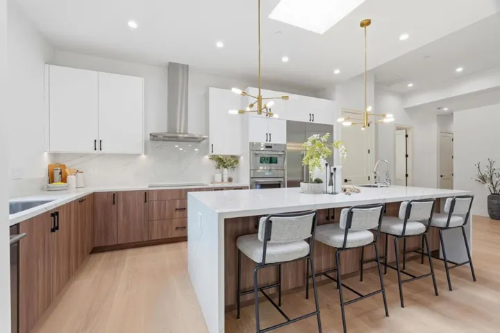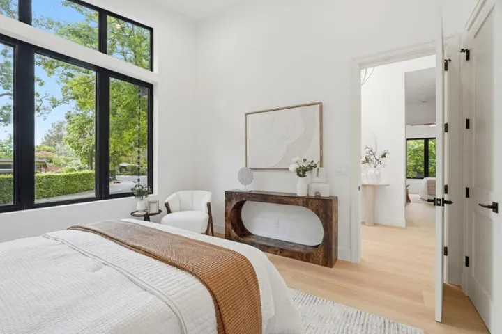 Experience refined living in this stunning custom-built home, where elegance meets modern comfort. Bathed in natural light from multiple skylights and sun tunnels, the interior offers a bright, airy ambiance throughout. Soaring 10-12 ft ceilings enhance the sense of space, creating a truly grand atmosphere. The expansive great room seamlessly connects a gourmet kitchen, formal dining area, and inviting family roomperfect for both everyday living and entertaining. The kitchen is beautifully appointed with custom cabinetry, premium Thermador appliances, and a spacious pantry. Gleaming European oak hardwood floors run throughout the home, adding warmth and sophistication. The luxurious primary suite features a walk-in closet and tranquil views of the beautifully landscaped backyard. Designed with both style and functionality in mind, the home includes full CAT 7 and coaxial wiring, integrated security cameras, and a central speaker system. Outside, enjoy a thoughtfully designed setting with a paved walkway, mature fruit trees, and vibrant flowering plants.
