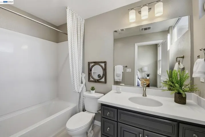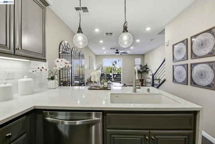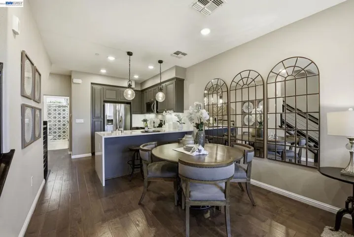 Welcome to 4119 Peralta Blvd in Fremont’s desirable Renato community by Pulte Homes. Originally purchased as a model home, this beautifully upgraded 3BD/3BA townhome offers approximately 1,652 sq. ft. of stylish modern living across three levels with a 2-car garage. The flexible lower-level loft makes an ideal home office and features lovely French doors opening to a private front patio, adding both charm and functionality. The bright open-concept main living area is perfect for everyday living and entertaining, while the kitchen showcases quartz countertops, a waterfall island, upgraded backsplash, stainless steel appliances, and contemporary finishes. Additional highlights include paid solar, a 220V EV charging outlet, upgraded flooring, upgraded lighting, under-cabinet lighting, an upgraded stair rail, and designer model-home touches throughout. Conveniently located near I-880, Hwy 84, BART, Centerville Station, shopping, dining, and top-rated schools, this move-in-ready home offers the perfect blend of style, comfort, and convenience in a prime Fremont location.