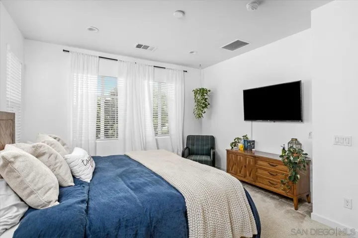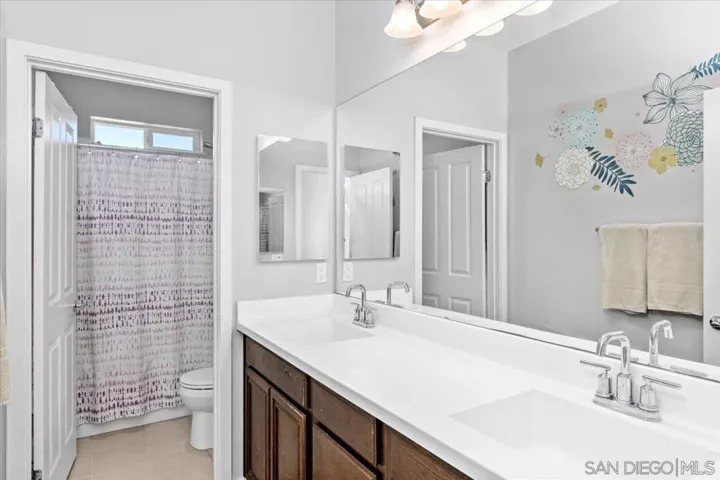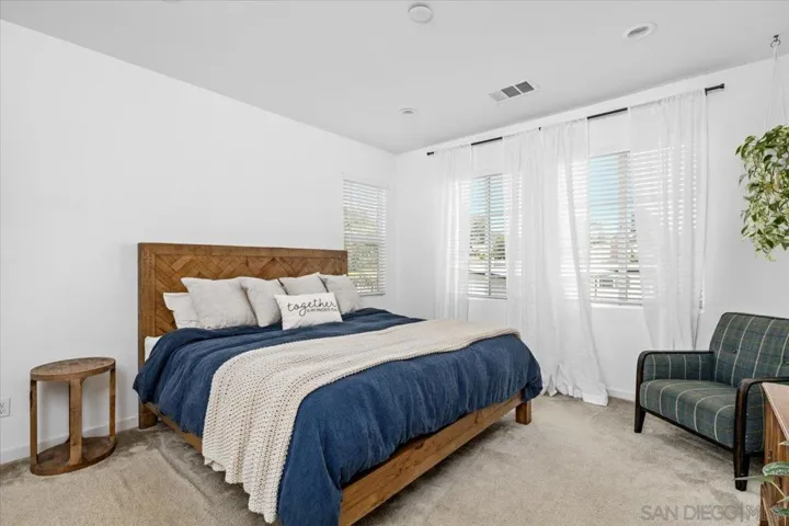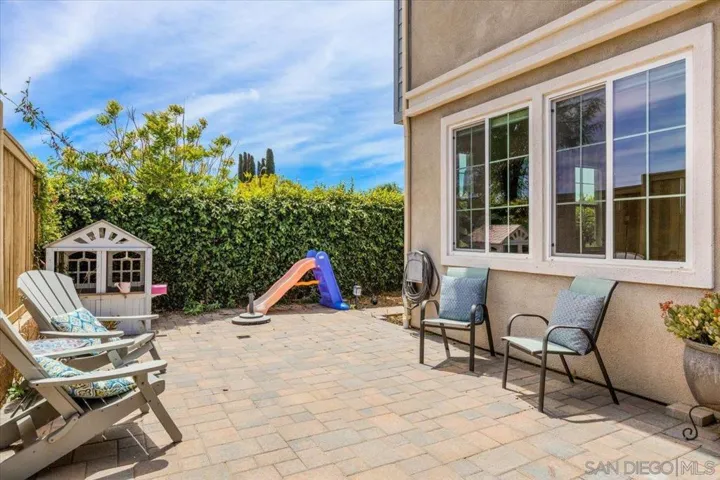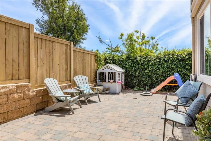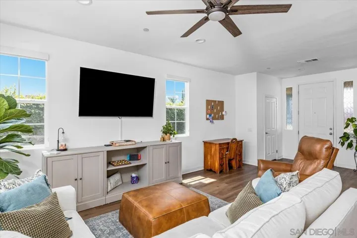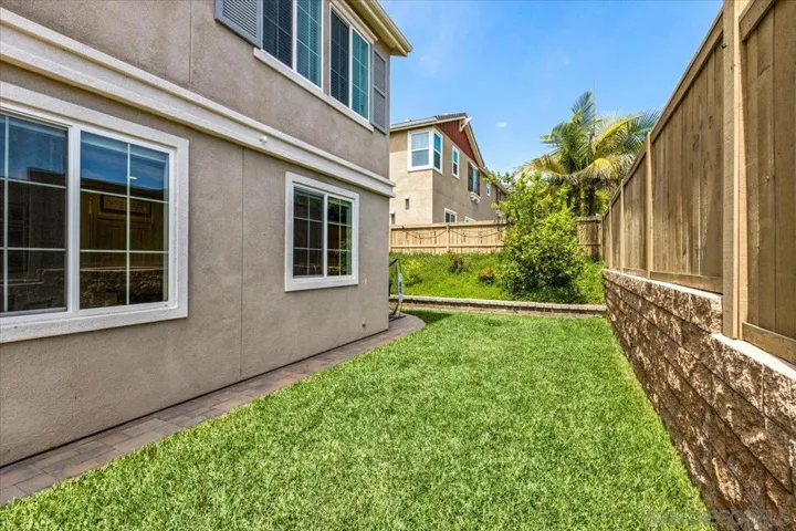 Beautiful and rare newer build 4-bedroom home with fully owned solar on a cul-de-sac in one of the most desirable locations in San Marcos! Walking distance to Richland Elementary, Woodland Park Middle School, Mission Hills High School, parks, restaurants, and shops! This home offers amazing privacy, with no neighbors on one side due to the corner lot location adjacent to community open space/bioswale and a high fence enclosing the newly designed private yard, which features manicured grass, an expansive stone paver patio, and mature, producing trees. Step inside to gleaming floors throughout the bright and open living areas. The generous kitchen features handsome wood cabinetry, granite counters, stainless steel appliances, and plenty of storage with a dedicated pantry area, too. Upstairs, you’ll find the primary bedroom and the large secondary bedrooms, which all have ceiling fans. Spacious upstairs laundry room and whole house fans too! The primary bedroom features an oversized walk-in closet and an ensuite bath with a glass-enclosed shower and separate vanities with dual sinks, making getting ready in the morning a breeze! Just minutes from fantastic San Marcos Unified schools and the Cal State San Marcos and Palomar College campuses. Easy access to two freeways (15 & 78) lets you get everywhere you need to be, including the beach, shopping, dining, hiking trails, and more. Low HOA dues!