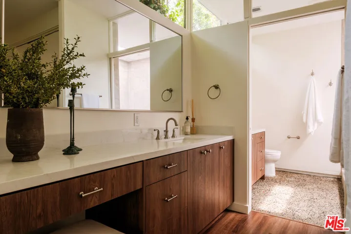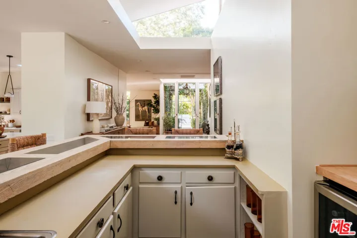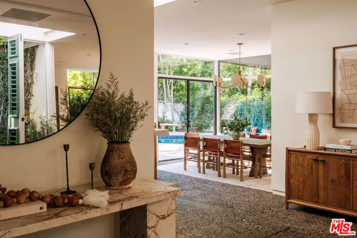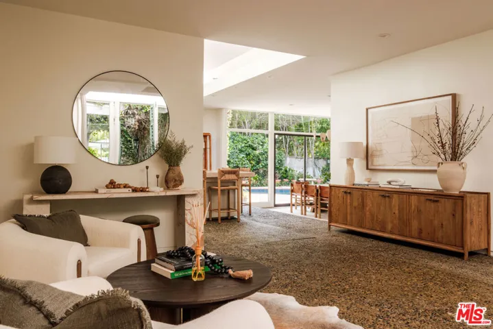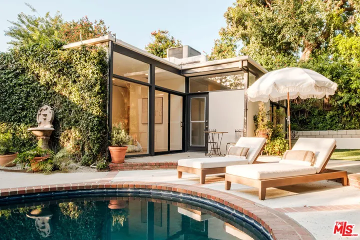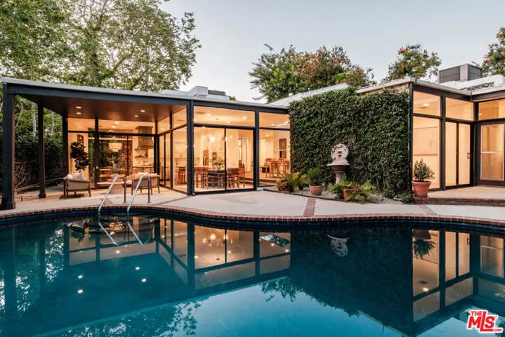 Tucked behind a lush canopy of ivy and mature greenery on prestigious Angelo Drive in Beverly Hills, this original Ray Kappe designed residence reveals itself as a secluded retreat, an enchanting secret garden hidden within the city. Offered for the first time, this is an extraordinary opportunity to acquire a truly one of a kind architectural home, where timeless mid century design meets modern day livability. Designed by pioneering architect Ray Kappe, Founder of the Southern California Institute of Architecture, the home reflects his signature philosophy of warm modernism, where post and beam construction, natural materials, and seamless indoor/outdoor flow create spaces that feel both refined and deeply livable. At 1151 Angelo Drive, walls of glass invite an abundance of natural light, illuminating a spacious open floor plan designed for both effortless living and elevated entertaining. Stone floors anchor light filled interiors, while thoughtfully composed spaces evoke a sense of calm, warmth, and sophistication. Each room opens gracefully to the outdoors, blurring the line between interior and nature. Subtle French Quarter inspired details introduce a romantic softness, adding depth and character to the home’s clean architectural lines.Extensively renovated both inside and out, the residence has been thoughtfully updated to meet today’s standards while preserving its architectural integrity. Recent upgrades include a new roof, a reimagined kitchen and bathrooms, updated plumbing and electrical systems, and numerous additional enhancements that ensure modern comfort without compromising design. The primary suite offers a true retreat, complete with a spa like bath featuring a luxurious wet room and a sculptural pedestal tub, an environment designed for relaxation and renewal. The stunning living room is centered by an impressive stone fireplace, with expansive walls of glass that frame serene views of the private patios beyond. Beyond the interiors, the property unfolds into a magical, ultra private backyard designed for both tranquility and entertaining. A newly built covered outdoor living room overlooks lush, mature landscaping and a sparkling pool, creating a resort like setting that feels worlds away from the city. A place where modernist design and everyday comfort exist in perfect harmony. Thoughtfully restored, move in ready, and impossible to replicate, it stands not only as a residence, but as a meaningful piece of architectural history. Just moments from the heart of Beverly Hills, Sunset Boulevard, and the Westside, the location offers unmatched convenience while maintaining a rare sense of quiet privacy.