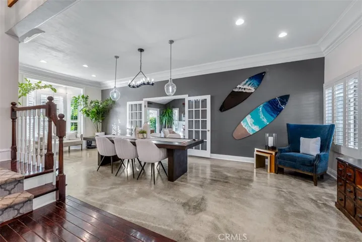 Discover this beautifully upgraded home located on a single-loaded street in the desirable Westridge community of Laguna Niguel. Offering approximately 3000 square feet on a 7,000 sq ft lot, this spacious residence blends thoughtful custom details, modern upgrades, and comfortable indoor-outdoor living. The home features two living rooms, four bathrooms (3 full, 1 half), and generously sized bedrooms, each designed with custom alcoves and double closets for added charm and functionality. Two of the rear bedrooms share a connecting porch, while the primary suite includes his-and-hers closets. The downstairs features durable epoxy flooring, while the upstairs showcases engineered hardwood flooring. The front living room offers custom built-ins with floating shelves, and the home is enhanced with recessed lighting, upgraded fixtures, and modern dimmer and touch switches throughout. Additional features include updated windows and sliders in the front living room, custom shutters upstairs, and a custom barn door accent. The updated kitchen includes Samsung smart appliances with WiFi connectivity, a stove with air-fry capability, upgraded cabinetry, and a pantry with an upgraded door. The home also includes a dedicated office space with custom countertops and sink. Enjoy two fireplaces, one gas and one electric, adding warmth and ambiance to the living areas. Bathrooms have been thoughtfully upgraded, including a remodeled powder room and toilets with bidet features. The outdoor space is designed for both relaxation and recreation with upgraded landscaping and hardscaping, new irrigation, and turf featuring a 4-hole putting green. The backyard also includes a pool area with permits approved and paid through the HOA and city, providing a great opportunity for future installation. Additional highlights include energy-efficient windows, smart thermostats, a security camera system, EV charger with upgraded electrical panel, and a garage with smart lock access. Residents enjoy a private Westridge trailhead, a highly walkable neighborhood, and convenient proximity to shops, restaurants, parks, and easy access to the 5 and 73 freeways. Ocaso Elementary and Crown Valley Academy are nearby, with the Laguna Niguel Community Center just minutes away. Take in beautiful sunset and mountain views from this welcoming home in a friendly neighborhood where community and outdoor living truly shine.