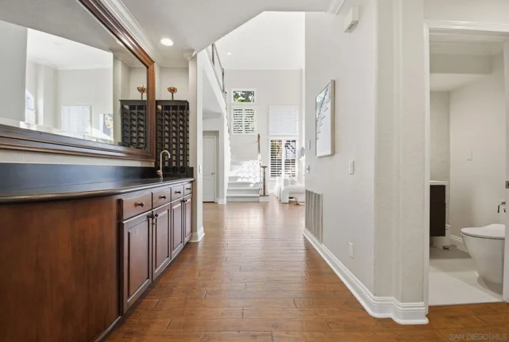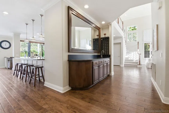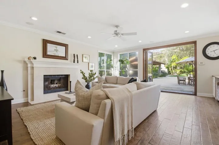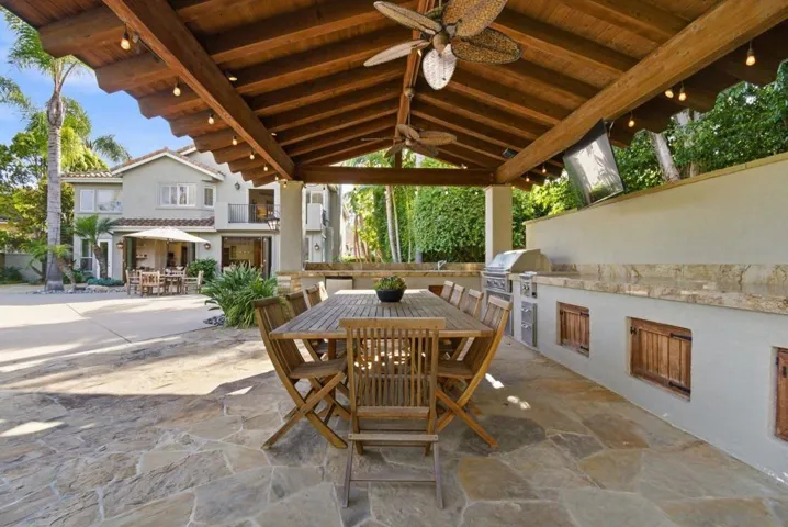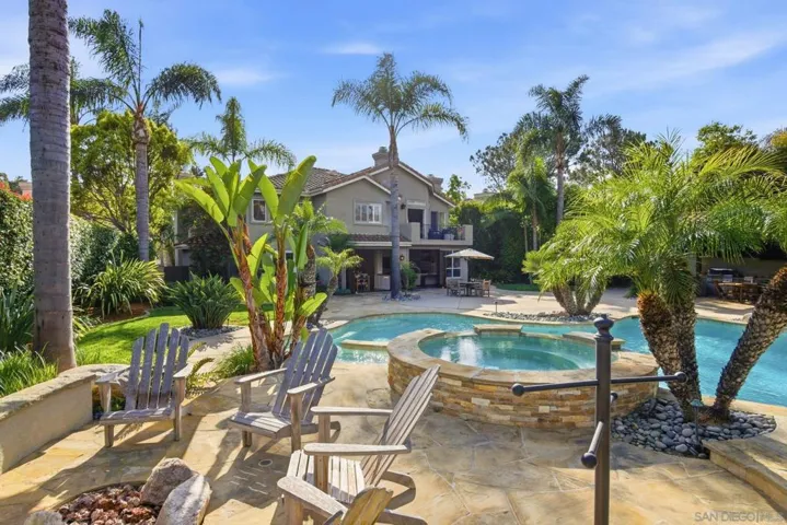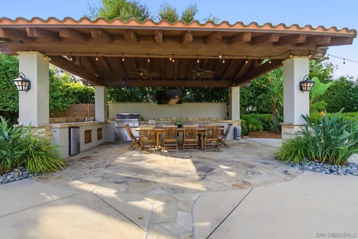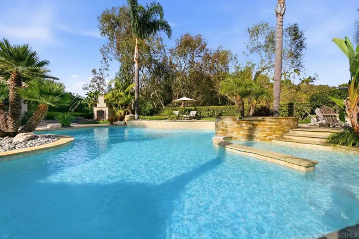 Prestigious Santa Fe Summit Estate, on one of Carmel Valley’s most coveted lots, this stunning .38-acre is the kind of property that comes along once in a great while. From the moment you pull up, the scale, the setting, and the sheer beauty of it all make clear that something special awaits inside. The interior has been thoughtfully remodeled from top to bottom with a level of care that shows in every detail. The chef’s kitchen is anchored by a Wolf 6-burner double oven, Sub-Zero refrigerator and Bosch dishwasher. Distressed hickory hardwood floors, plantation shutters and remodeled bathrooms throughout give the home a warm, polished feel. La Cantina wood and glass doors open to the backyard seamlessly, and a first-floor bedroom with French doors to a tranquil fountain courtyard adds flexibility for any buyer. The primary suite is a true retreat with a private balcony overlooking the backyard. The 900-bottle wine cellar, integrated Sonos sound system inside and out, owned 25-panel solar, 40-amp Tesla charger, smart Ecobee climate control and LED lighting throughout complete the picture of a home that has it all. Out back, the resort-style yard steals the show. Pool, spa, an outdoor pavilion with a built-in Lynx BBQ and full kitchen, a bar and a romantic fireplace make this backyard the ultimate place to entertain or simply unwind. Rarely does a property this special come to market in Carmel Valley!!