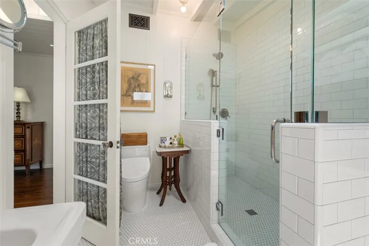 Echoing the character of a 1930s cottage, the home blends vintage charm with modern comfort. Captivating ocean views unfold across the great room, dining area, and chef’s kitchen, creating a light-filled, inviting atmosphere. Expansive Ipe wood decking sets the stage for entertaining, while a tranquil courtyard and lush, private grounds—thoughtfully designed by local landscape architect Ann Christoph—offer a serene escape beneath a graceful Magnolia tree.
