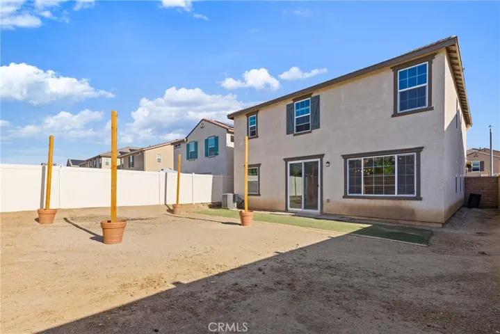 Welcome to one of Homeland’s newest communities, where modern 2023 construction meets thoughtful upgrades and true turnkey living — with NO HOA. This spacious 4-bedroom, 2.5-bath home offers 2,619 sq ft of well-designed living space on a 4,792 sq ft lot. Built in 2023, the home still carries the benefits of newer construction — modern systems, current building codes, and a fresh aesthetic — while already featuring the upgrades most buyers add after moving in. Step inside to find updated laminate flooring throughout the main living areas, modern lighting fixtures, and elegant gold-toned hardware — finishes that elevate the home well beyond standard builder-grade. The kitchen is the centerpiece of the main floor, featuring dark quartz countertops, a generous layout, and a walk-in pantry that offers the kind of storage most homes simply don’t have. The floor plan is designed for real life. A downstairs bonus room gives you the flexibility for a dedicated home office, gym, playroom, or guest space without sacrificing a bedroom. Upstairs, a spacious loft adds a true second living area — ideal as a media room, study space, or lounge. The four bedrooms are well-proportioned, giving everyone in the household their own space to retreat to. A tankless water heater provides on-demand hot water while reducing energy costs — a feature typically found in higher-end builds. The low-maintenance lot means less time on yard work and more time enjoying your home. Located in a newer Homeland neighborhood with easy freeway access to the I-215, putting Menifee, Murrieta, Temecula, and the greater Inland Empire within comfortable reach. With no HOA fees, you get the pride and benefits of a newly built community without the monthly dues or added restrictions. Why wait for new construction when this one is already upgraded, completed, and move-in ready?