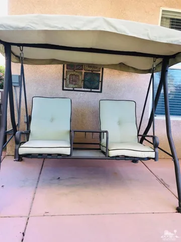 Indian Palms CC, Enter into a wonderful court yard. This turnkey-furnished with over 2000 sq. ft. 3 bedrooms and 3 baths. Master suite has a slider door leading out to the private patio for your morning coffee. A gourmet kitchen with slab granite counter tops, a center island. Home is decorated very nicely, on the golf course with lots of patio furniture for entertaining. Community has 3 pool and spas for the tenant use. Life style center with classes and nice work out room. Restaurant and Bar within the gates of the community. Public golf course so you can pay and play. Lots of great green belt areas. Close to the polo grounds and the festivals shopping, Starbucks. Home is leased Jan-April 2023