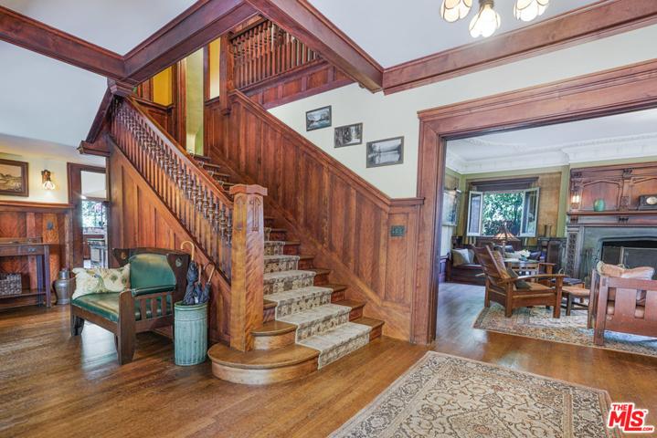 Never-before rented, this1911 Train & Williams designed gem is truly one of a kind. Every detail has been thoughtfully restored by the current, long-time owners. Located in the historic, gated Victoria Park neighborhood of the West Adams district, this 5500 sqft home features 5 bedrooms*, 5 bathrooms, a gym and a study. Spacious dining room with lots of natural light, large open chef’s kitchen with high-end appliances and custom features. Beautiful hardwood floors throughout, cozy living room with fireplace and adjoining music room. A genuinely unique theater and media room occupies the third story and features an incredible audio/visual experience, a full bar area and wine fridge. A charming five hundred sqft terrace allows entertaining with complete privacy. The lush backyard has calming water features, two patios, and an outdoor dining area under a pergola. Known as the Holmes-Shannon House, the home is listed in the National Register of Historic Places and was designated aLos Angeles Historic-Cultural Monument in 2007. There are simply too many wonderful aspects to list in this extraordinary home. It is truly a must see. LINK TO VIRTUAL TOUR BELOW:https://www.zillow.com/view-3d-home/df1b40ee-eee7-4665-8ef9-27df1d0c4d65?setAttribution=mls&wl=true***HOME IS BEING OFFERED FULLY FURNISHED*** TWO BEDROOMS CURRENTLY CONFIGURED AS OFFICE AND GYM.