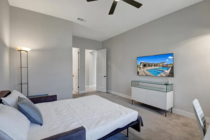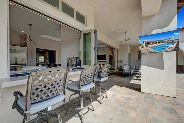 Brand new listing! Welcome to your spectacular dream vacation home located in the prestigious Griffin Ranch gated community. Prepare to be immersed in total luxury and relaxation in this beautiful resort oasis boasting a spacious open layout with over 4,150 sqft that harmoniously balances contemporary design with traditional comfort. Entering through the front gate you’re immediately transported to your own vacation paradise. The massive courtyard greets you with custom pavers, large Pebble Tec salt water pool and spa, misting system, 2 TV’s, heat lamps, built-in BBQ, mini fridge, 8-seat outside dining table, 6 lounge chairs, 2 lighted umbrellas, and a large conversational sectional. The huge firepit is perfect for cozying up on those cool desert evenings, or you can make your own tee time with the lighted 5-hole putting green. There is also an additional outside lounging area off the den with a firepit and beautiful mountain views!Bring the outside in with 10 foot tall, 22 foot wide double sliding glass doors that open the living room to the courtyard creating the ultimate indoor/outdoor living experience. Too many amenities to name, this home won’t last! Currently available April – September. Rate varies, discounted rates for summer rentals.